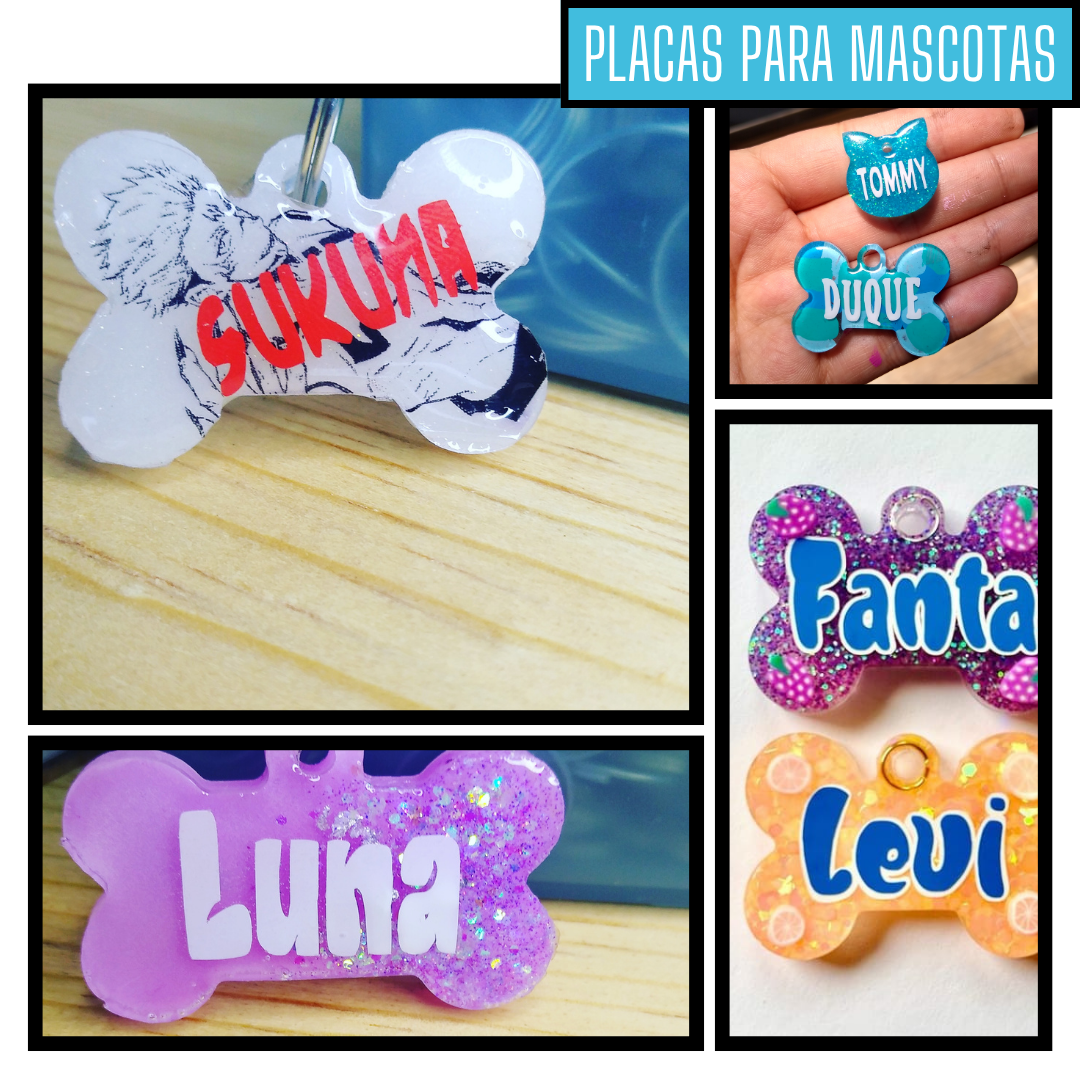 Placas personalizadas con diseños,desde un objeto hasta el diseño de un personaje de tu seleccion. Tu lomito o michi siempre lucira adorable, con un collar personalizado.